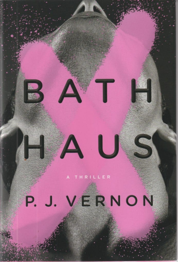First of all, I want to point out that back when I was getting started, the chances of this book being published by a mainstream press like Doubleday, in hardcover, were so infinitesimal I can't even think about such a manuscript being delivered to a mainstream editor in 2000 without laughing out loud. The book opens in a bath house, for God's sake; my QUEER publisher made me make a slight change to Murder in the Rue Dauphine, which meant not having the murder victim and his wealthy closeted lover meet in a French Quarter bath house. (I was told they would not be seen as sympathetic by the reader, which also struck me as odd; but it was also my first book and I wasn't going to argue, assuming my queer publisher knew better than I did) Hell, even the title is Bath Haus--which kind of lays it all out for you, right there. This book also doesn't shy away from gay sexuality, either--another third rail in thriller/crime fiction. It's all right there for you, and not done in a prurient way; it is simply presented as another facet of their lives, much as it would be if it were a heterosexual couple.